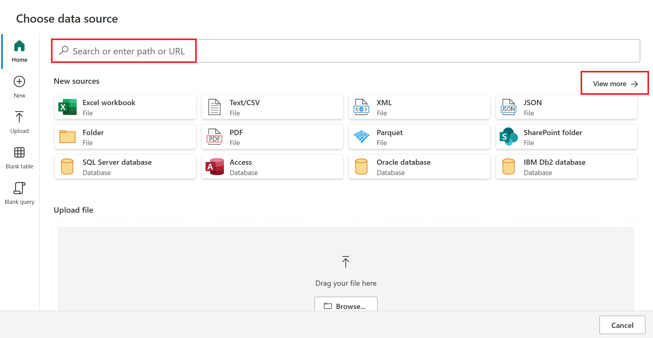 在 选择数据源 页面中,使用 搜索 来搜索连接器的名称,或在连接器右侧选择 查看更多 以查看 Power BI 服务中所有可用的连接器列表。
