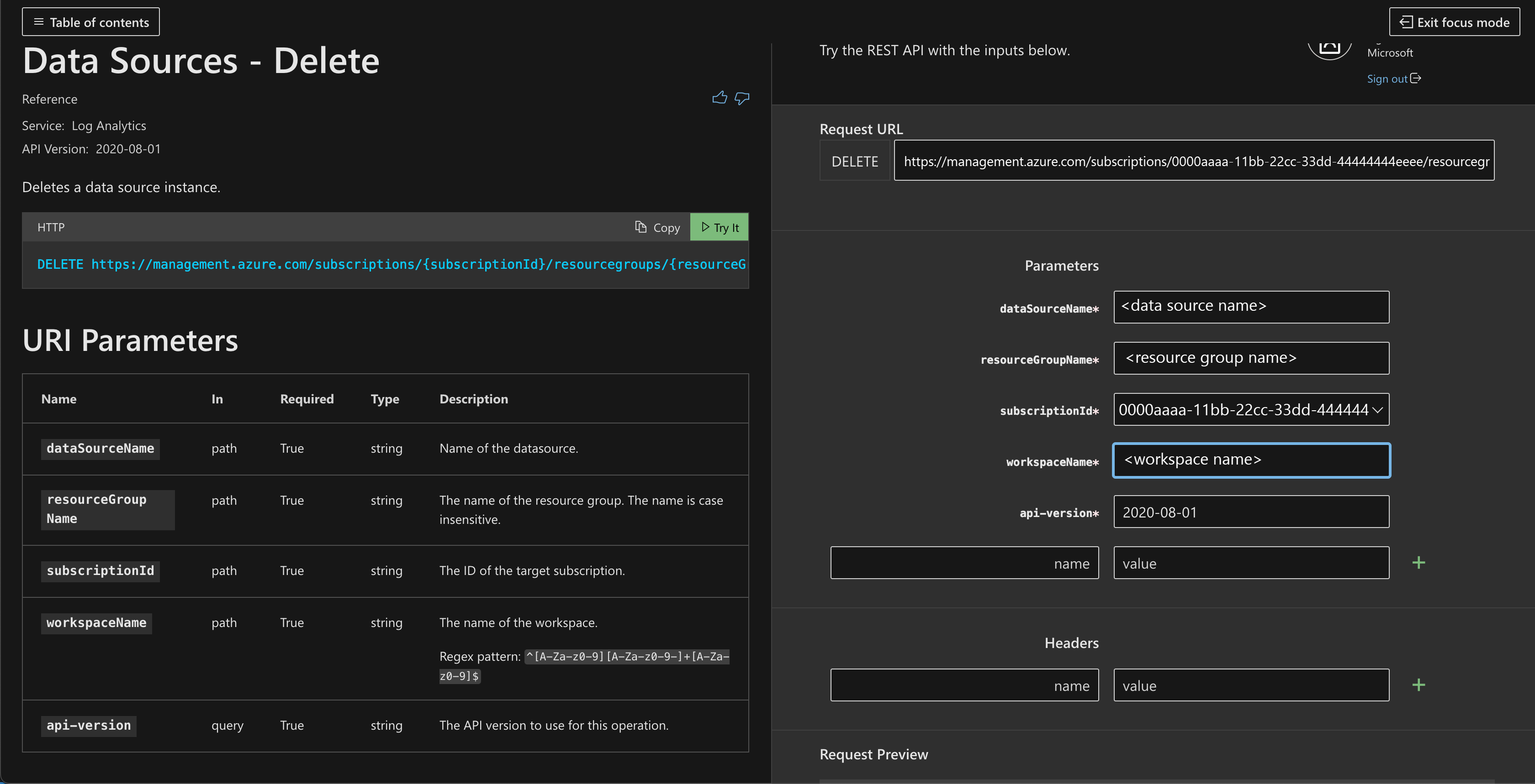 | 操作名称 | 操作名称 | OperationNameValue | REST API 将本地化操作名称值。 Log Analytics UI 始终显示英语。 |