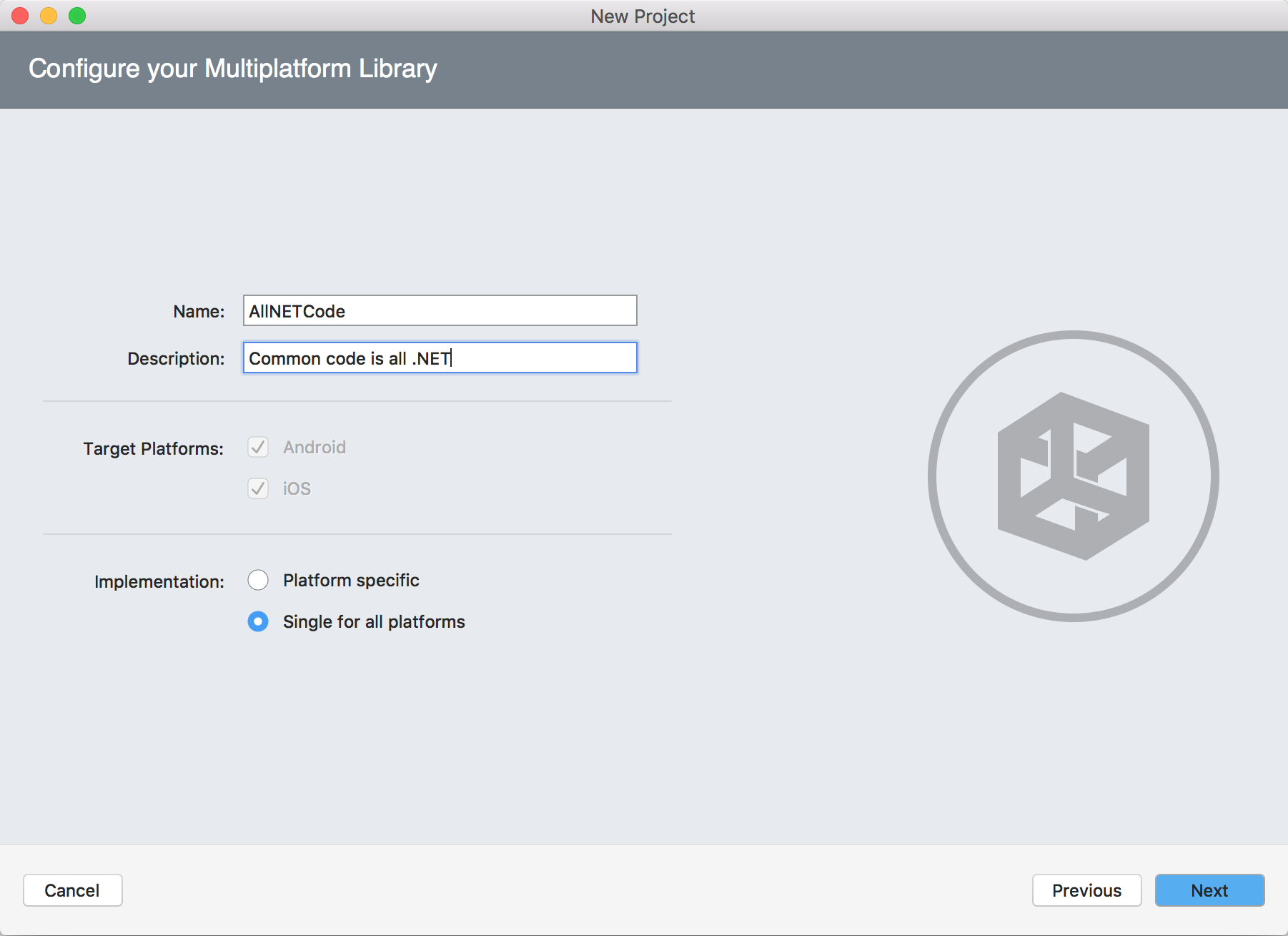 该库只能包含所选 PCL 或 .NET Standard 配置文件支持的代码,以及添加的任何其他 NuGet。 这适用于可以在 .NET 基类库中完整表示的业务逻辑和算法。