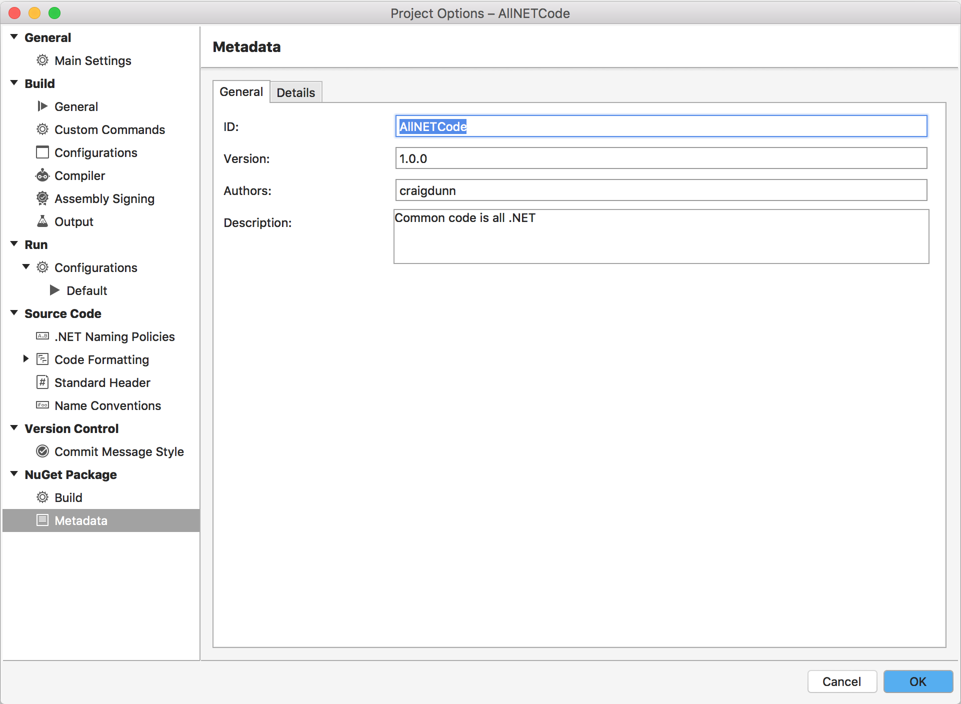 右键单击新库项目,然后选择“选项”。 通过“生成”>“常规”部分可设置“目标框架”- 选择 .NET 可移植 PCL 配置文件或 .NET Standard 版本: