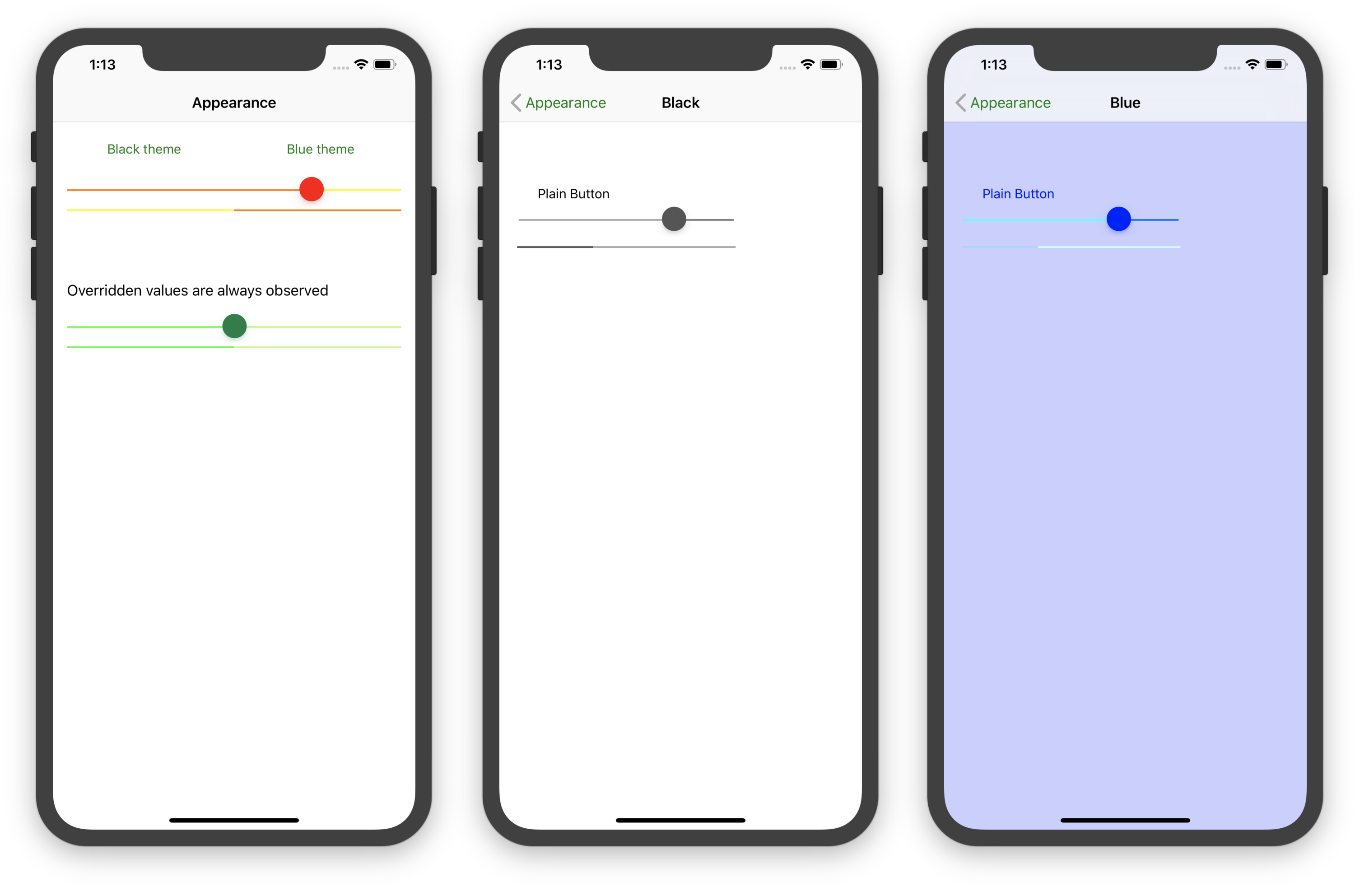 直接在控件实例上 – 可以在许多控件(包括工具栏、导航栏、按钮和滑块)上设置色调颜色、背景图像和标题位置(以及其他一些特性)。