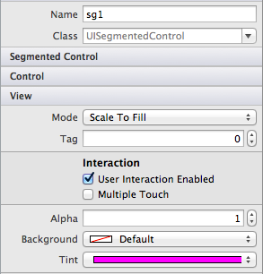 为了更改特定的 UISegmentedControl 以具有 Magenta 色调,我们将在 ViewDidLoad 中引用屏幕上的特定控件,如下所示: