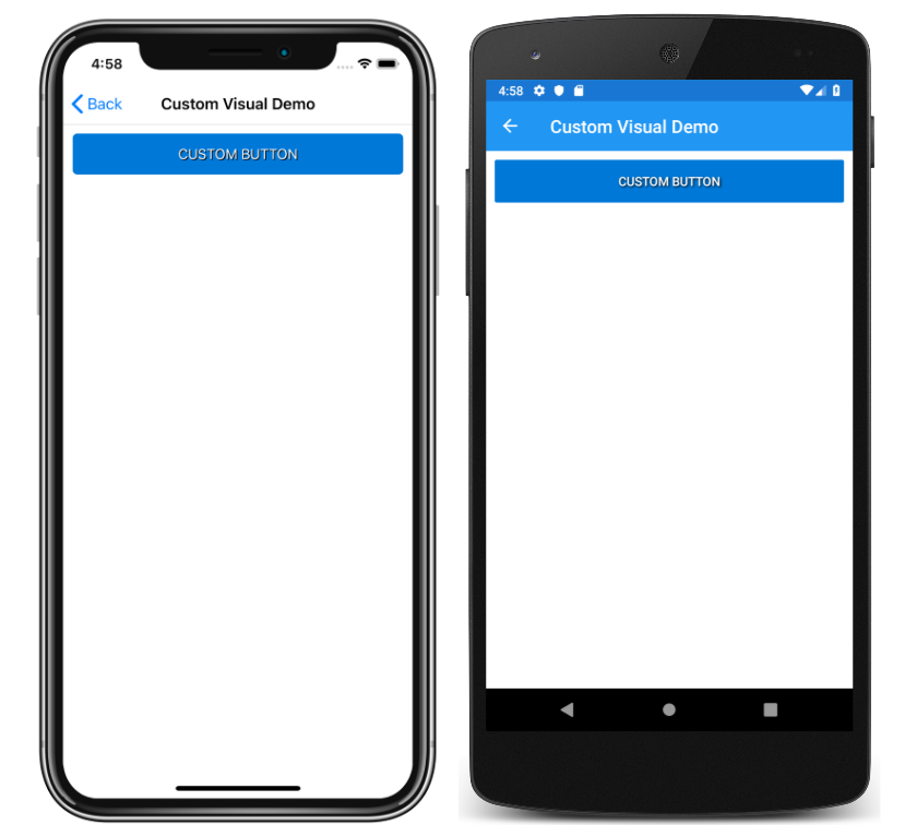 在 iOS 平台项目的这个示例中,ExportRendererAttribute 指定 CustomButtonRenderer 类将用于呈现使用 Button 对象,将 IVisual 类型注册为第三个参数。 将使用一个可指定 IVisual 类型(作为其 ExportRendererAttribute 的一部分)的呈现器而不是默认呈现器来呈现选择加入的视图。