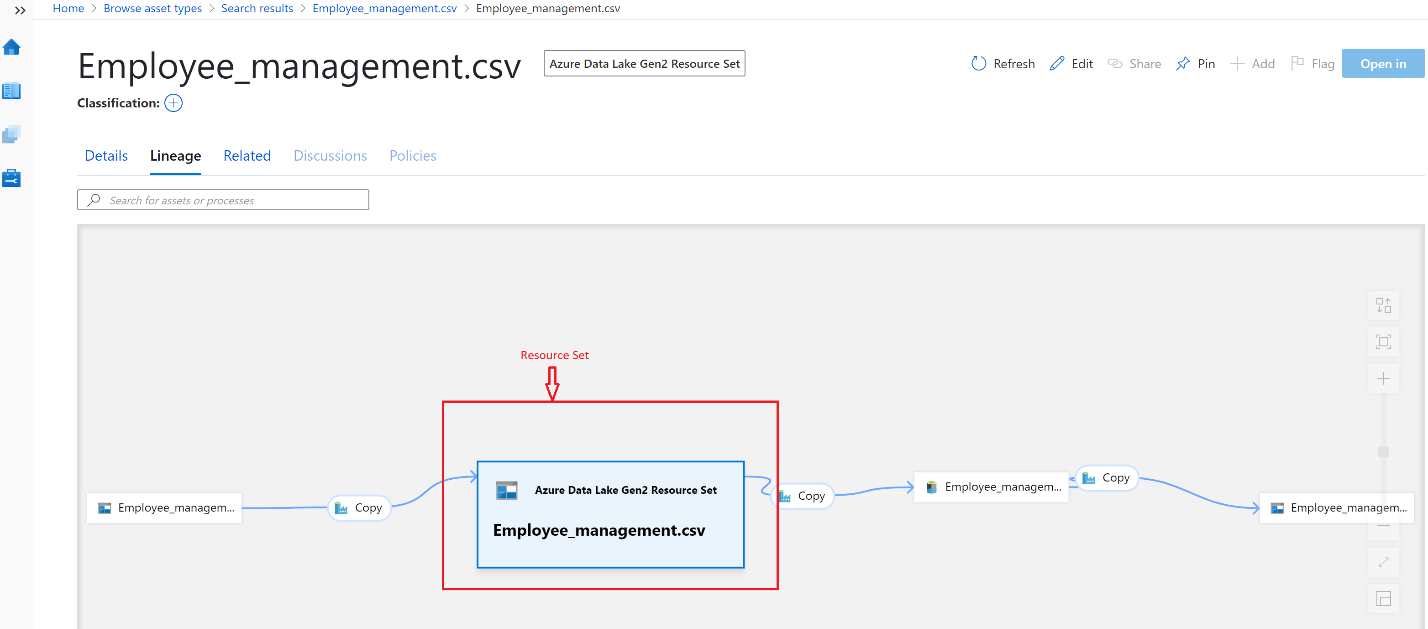 - 数据流世系可能会生成文件夹级 资源集 ,而无法查看所涉及的文件。