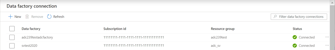 我们支持同时添加最多 10 个Azure 数据工厂帐户。 如果要添加 10 个以上的数据工厂帐户,请分批添加。