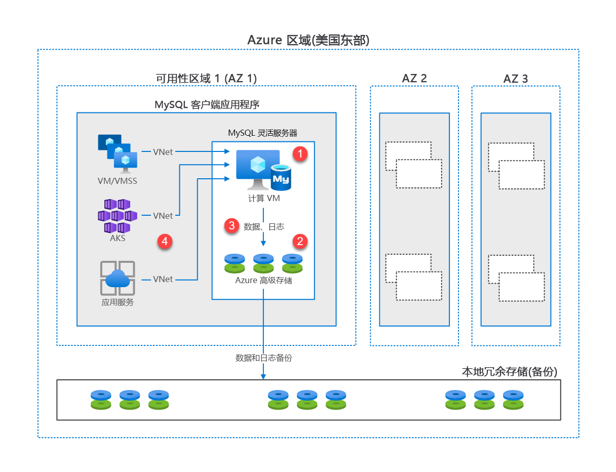 - 此外,你还可以选择将连接到 MySQL 灵活服务器的各种客户端应用共置在同一可用性区域内。
