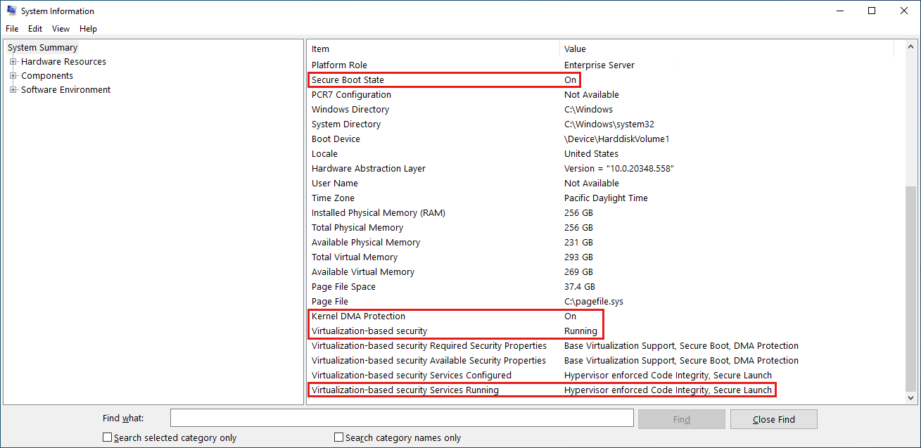 - 系统固件必须满足预启动 DMA 保护要求,并在 ACPI 表中设置适当的标志,以选择加入和启用内核 DMA 保护。 若要详细了解内核 DMA 保护,请参阅 针对 OEM 的内核 DMA 保护(内存访问保护)。